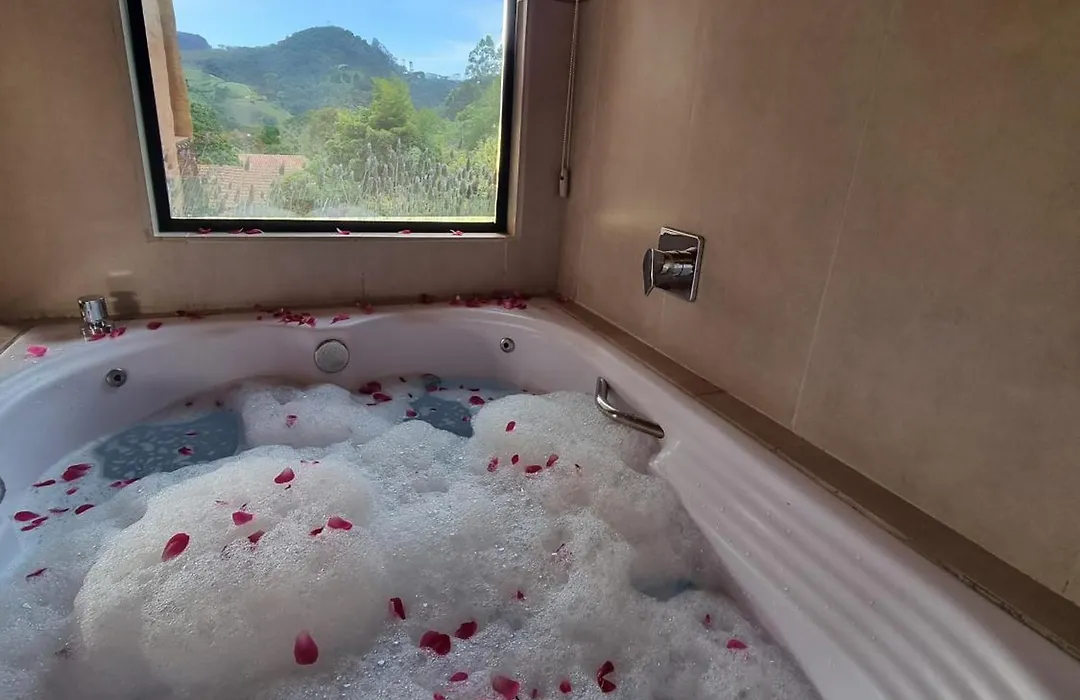 Chale Som Da Sete Quedas Hidromassagem, Lareira E Vista Para As Montanhas villa also offers views of the mountain. Bathroom facilities at this property also include a spa bathtub, a separate toilet, and a shower. Hair dryers, shower caps, and bath sheets are included to enhance your comfort.