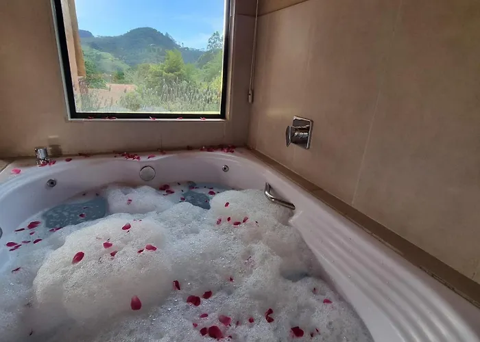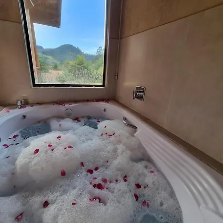 The 0-bedroom Chale Som Da Sete Quedas Hidromassagem, Lareira E Vista Para As Montanhas Goncalves villa, located around 20 minutes' walk from the Papegilla Atelier, invites guests to relax in a Jacuzzi. Featuring a sun terrace, the property is situated approximately 3 km from the Serras e Quintais.